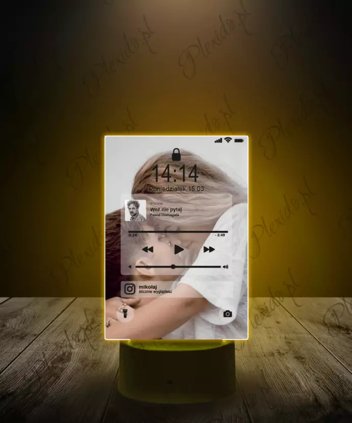 Na eleganckiej tabliczce z podstawką widnieć będzie przesłane przez Państwa zdjęcie, wybrana piosenka, data i godzina oraz powiadomienie z Instagrama.