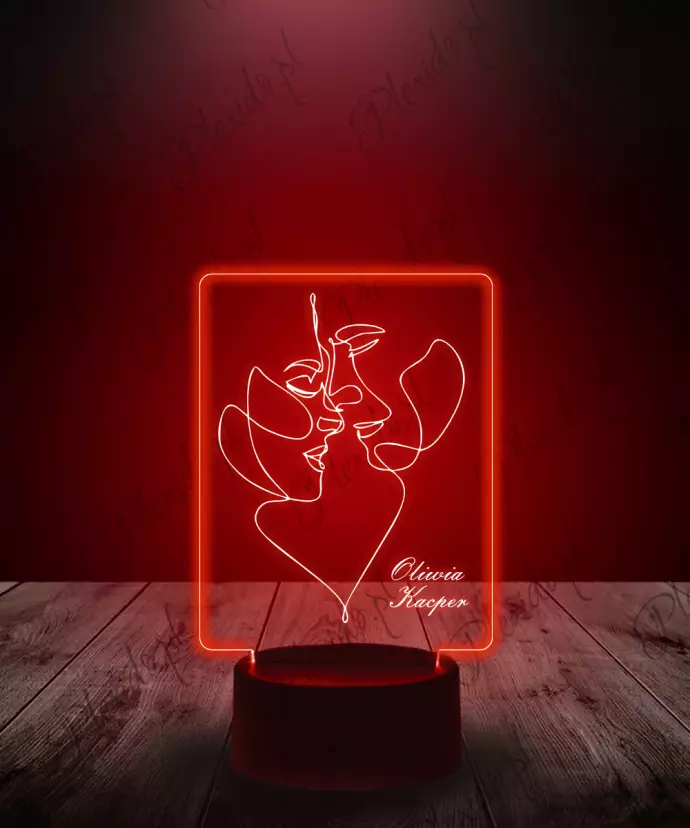 Lampka 3D LED LAMP Prezent na Walentynki LineArt Pocałunek