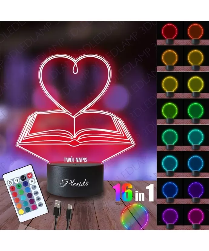 Lampka Nocna 3D LED LAMP Księga Miłości